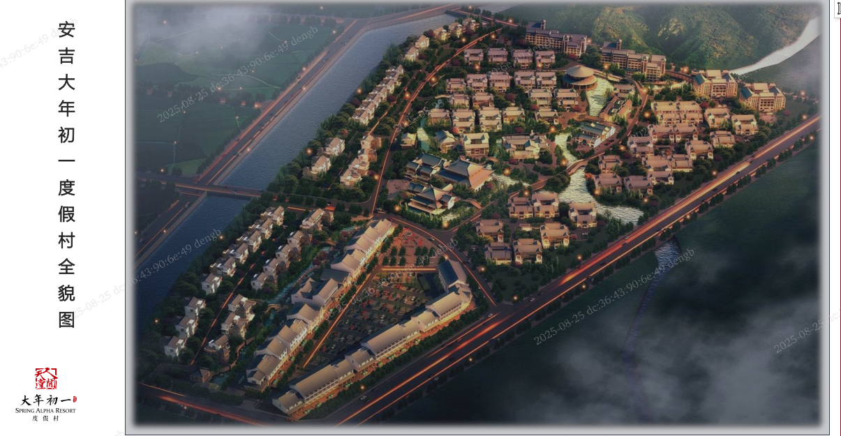 该酒店项目地处浙江省安吉县余村,山清水秀,森林覆盖率71%。安吉是中国美丽乡村建设发源地,是全国首个生态县,获全国首个县域“联合国人居奖”。大年初一度假村以明清古建筑和江南园林为设计原轴,结合安吉本地以及中国经典传统文华特色;大年初一是安吉美丽乡村旅游的一张名片,拥有客房共计1103间房,2600个床位,分布于5个村。旅游设施配套齐全,近1000平的室内恒温泳池(夏季开放)、涌泉(冬季开放)、中医馆、汉服馆、射箭馆、垂钓、书吧等,有安吉最大的会议中心,可接待千人。